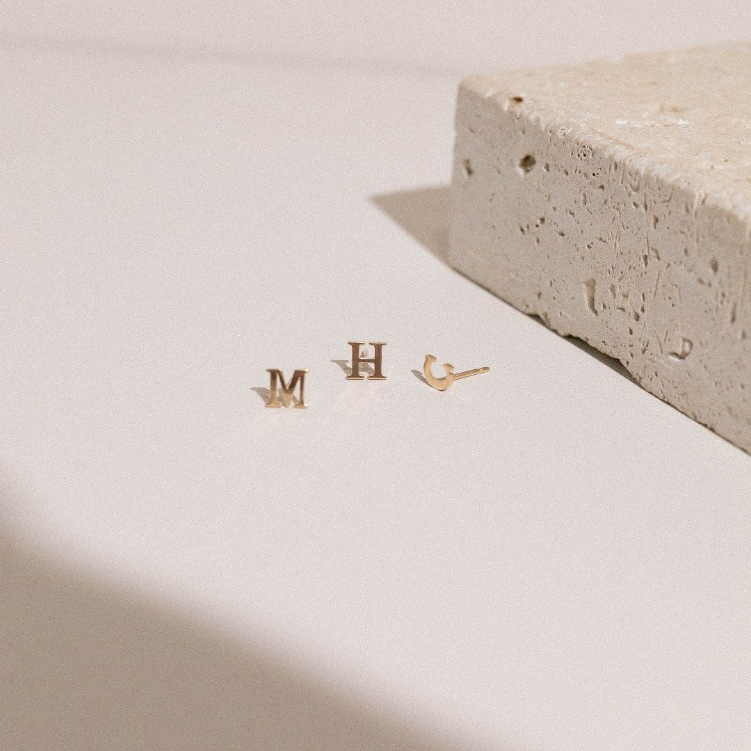 The Baby Initial is one of our original and best-loved designs; a delicate stud that has been part of our collection for nearly a decade. Crafted in solid 14K gold, it is petite by design yet perfectly proportioned to match our Baby Initial necklaces and bracelets, ensuring it remains visible without ever feeling overpowering.
