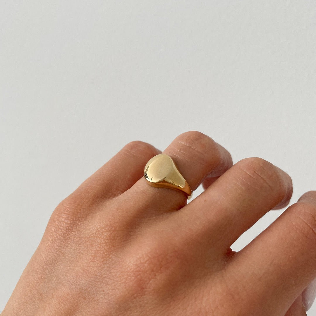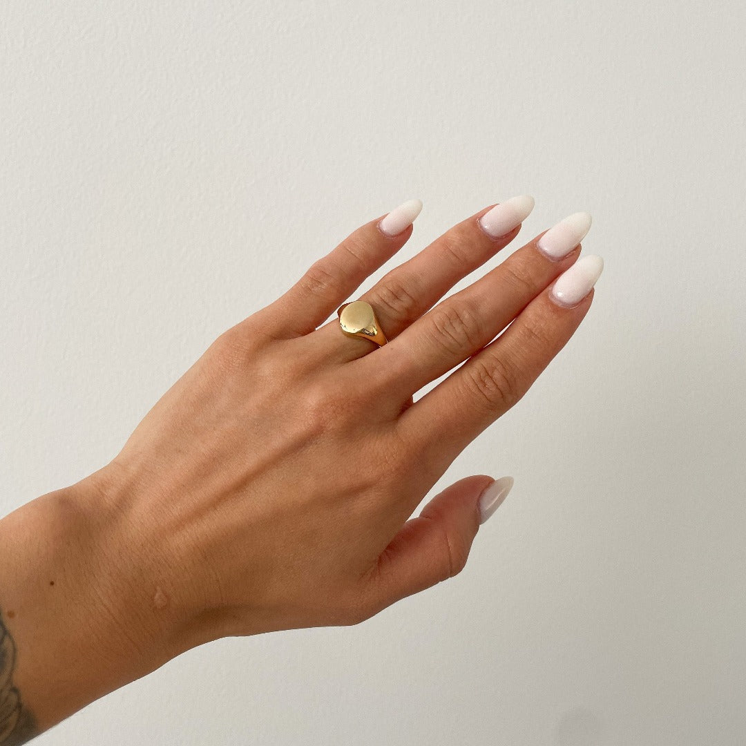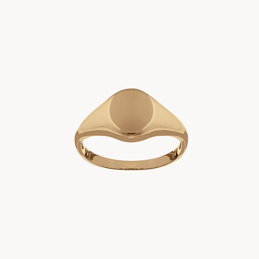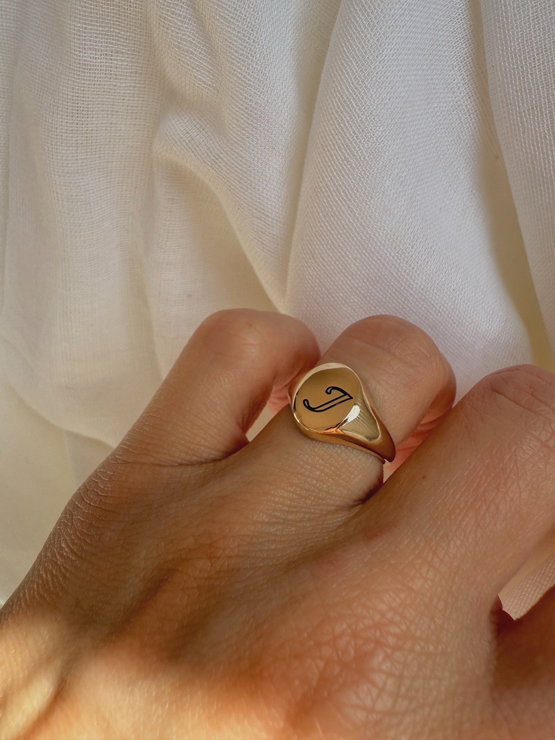Our heirloom oval signet ring is crafted in solid 14K gold. Dainty in feel, yet timeless in durability. Its lightweight form sits comfortably on the finger, while the intricate filigree underside brings quiet luxury to a classic silhouette.