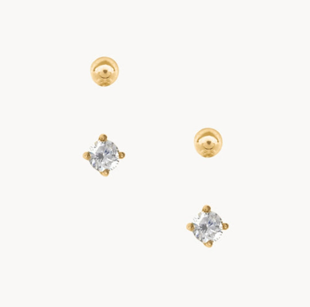2mm Gold Cubic Zirconia & Ball Stud Pack