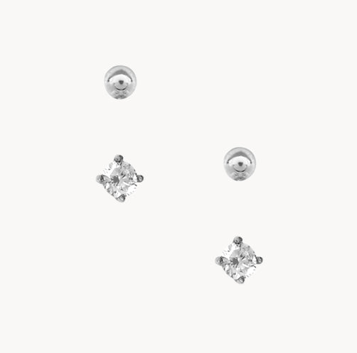 2mm Silver Cubic Zirconia & Ball Stud Pack