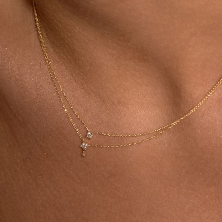 A cluster of delicate diamonds set in 9K solid gold on a fine chain.