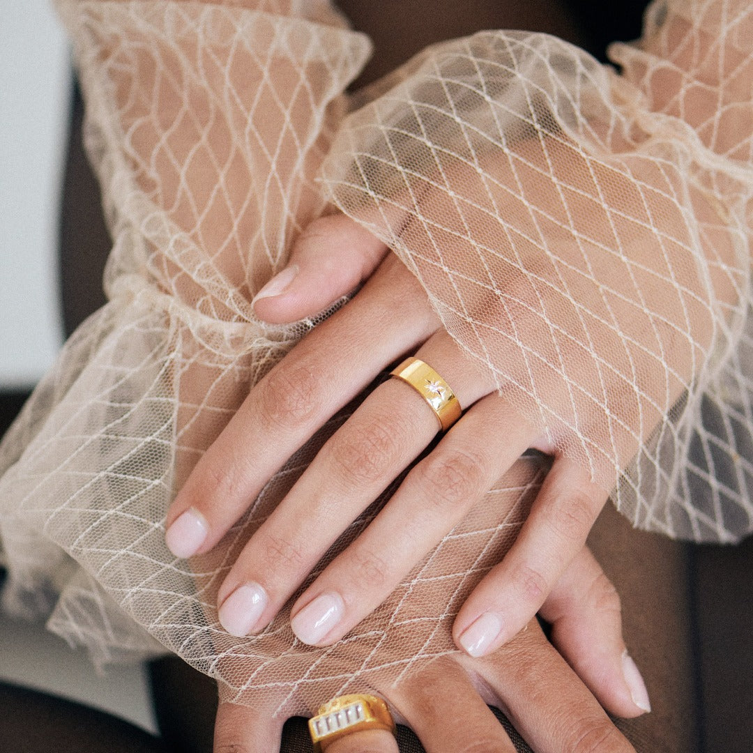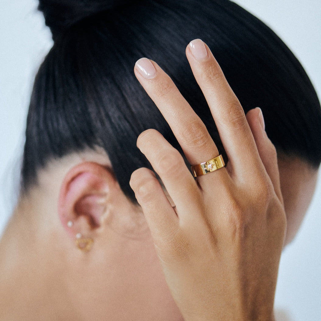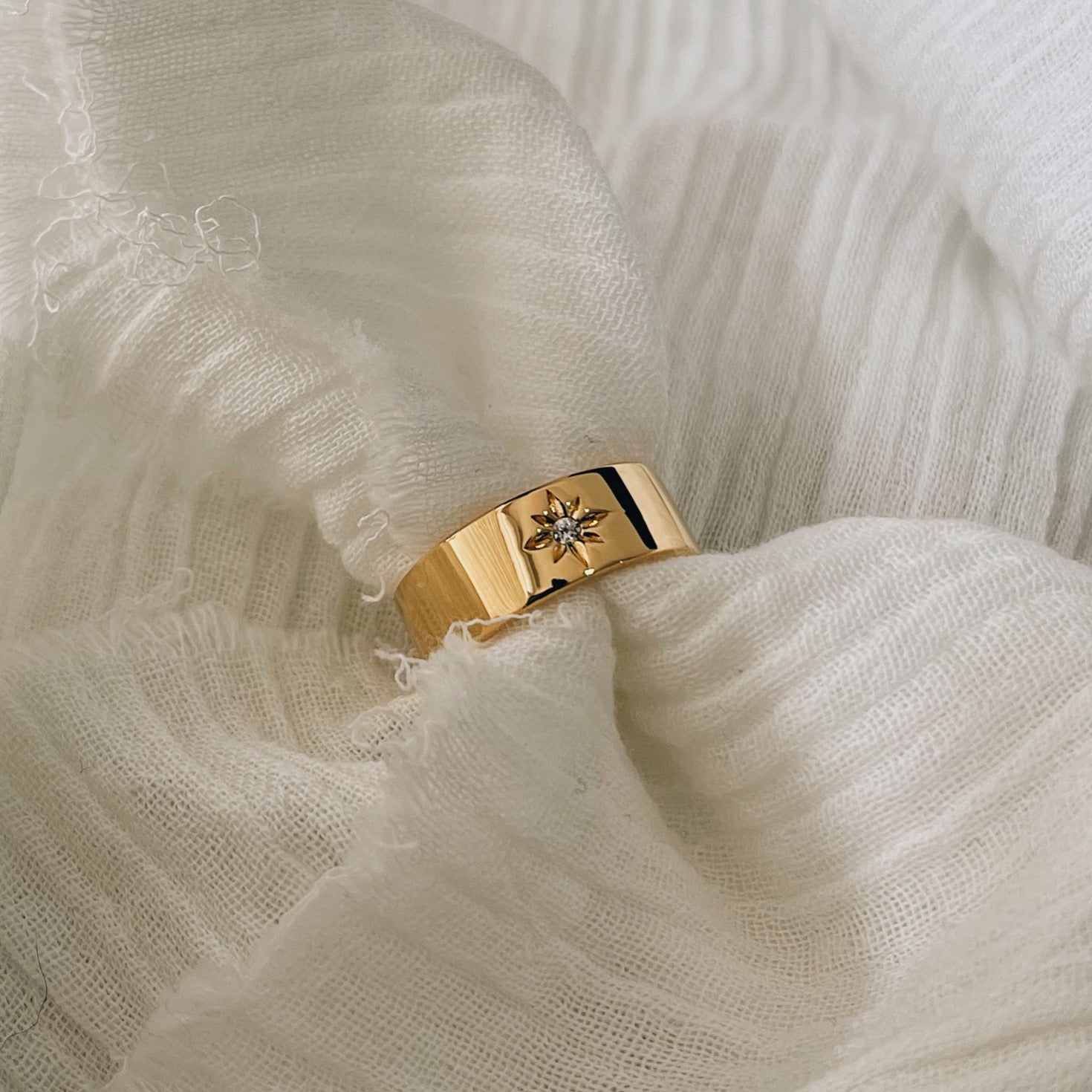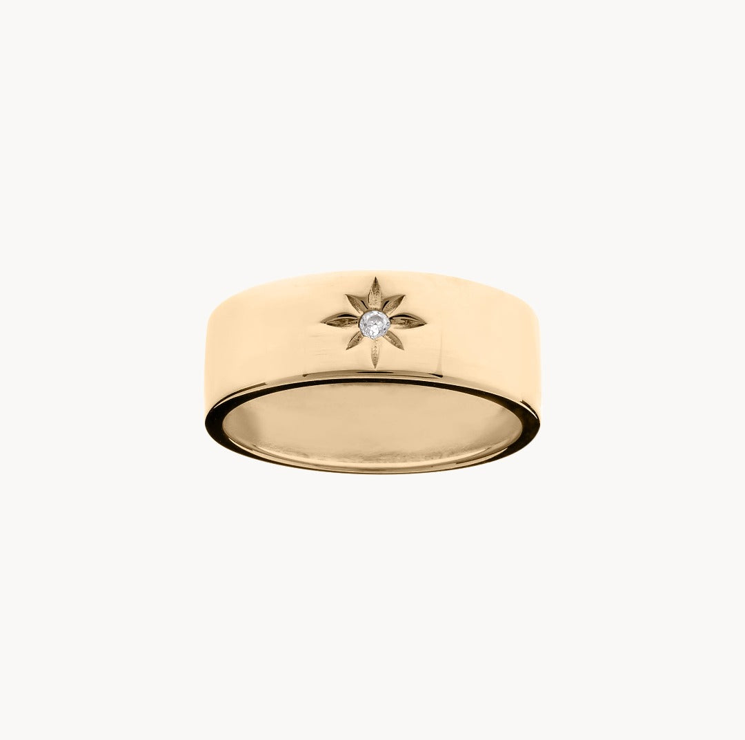 A subtle statement piece with an engraved star that delicately holds a White Cubic Zirconia stone.