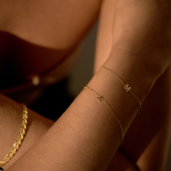 Every detail is considered. Each bracelet is individually handmade by our trusted jeweller of over 20 years, using locally sourced materials and time-honoured techniques. This piece is not mass-produced, it is crafted with care to honour what matters most. Choose 1 to 4 initials or symbols on a chain, designed to be worn daily & cherished deeply. Read our FAQ below for full details on the handmade Baby Initial & Symbol Bracelet.