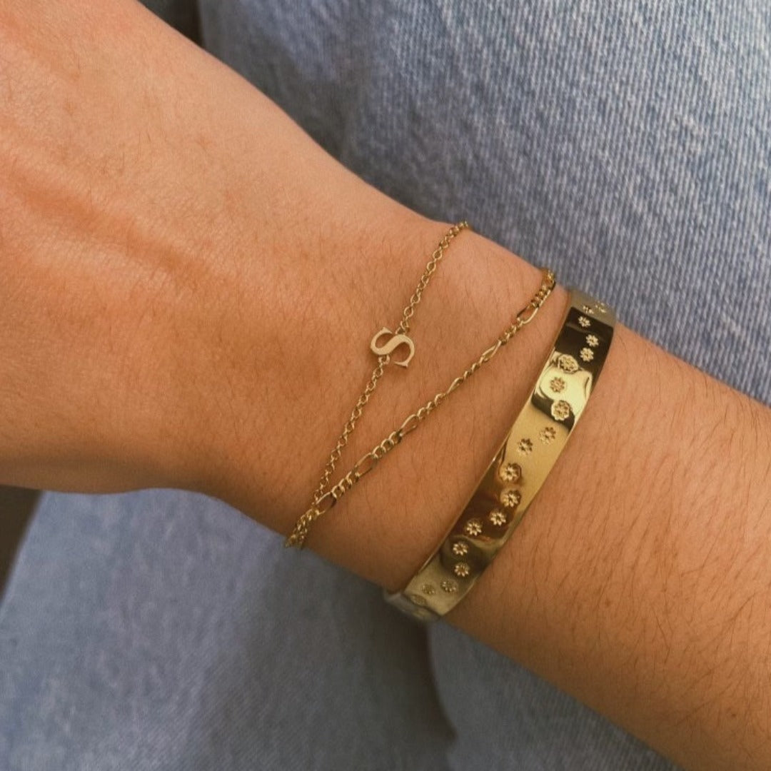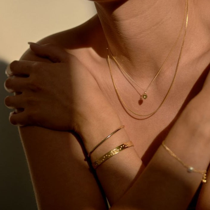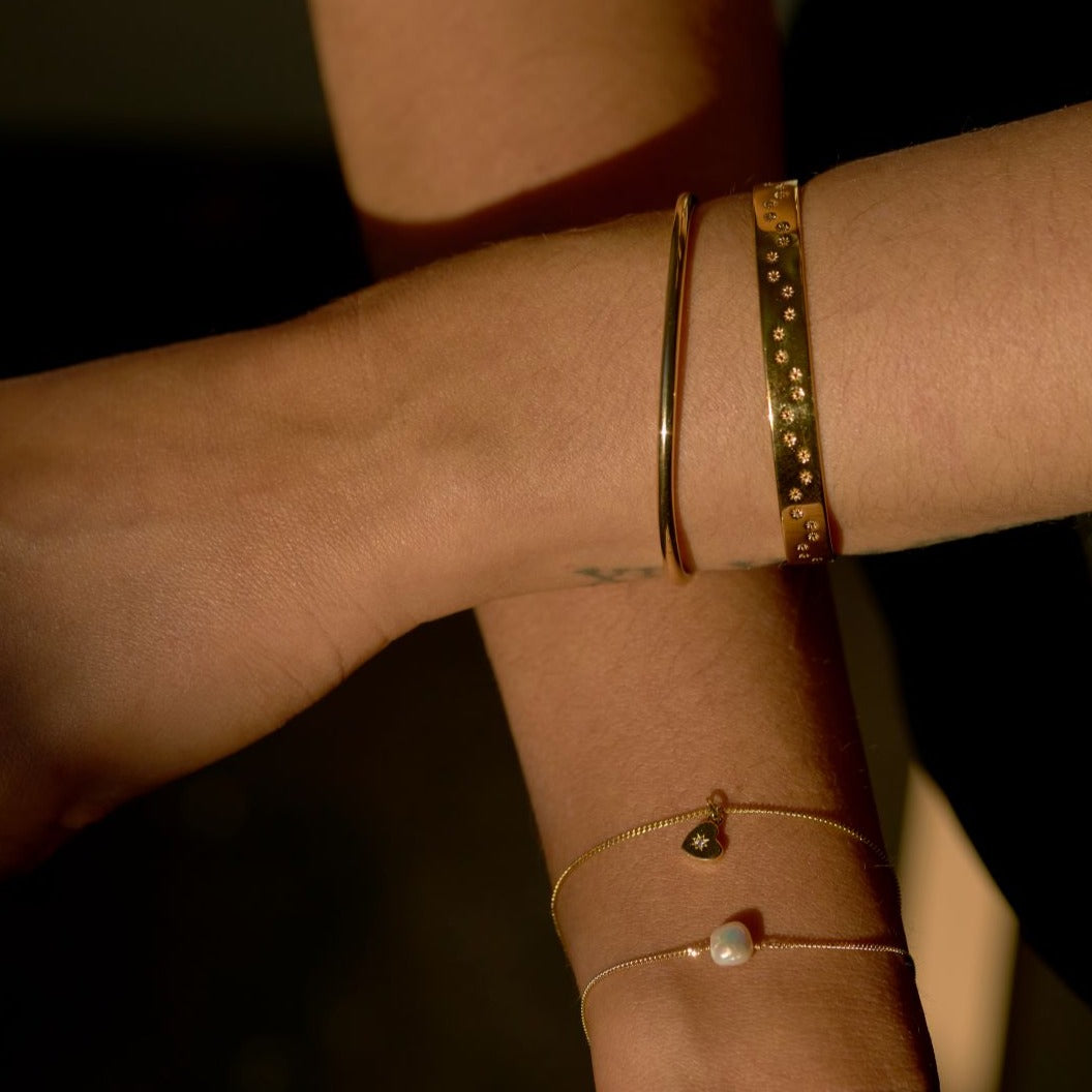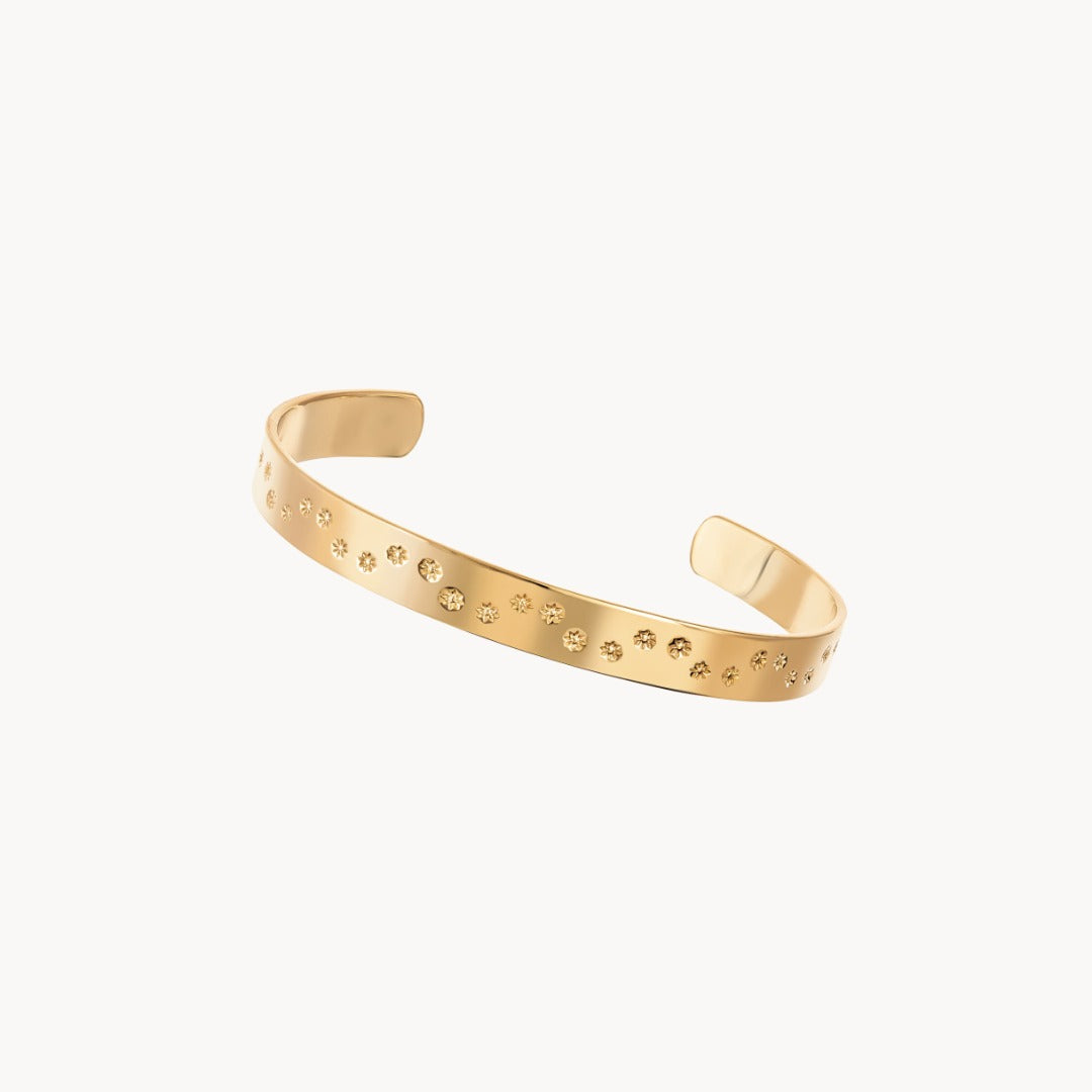 Our very own in-house love story, a cuff close to our hearts here at Esq. This design is based off of our very own custom heirloom pieces handed down through 2 generations. This cuff features lightly embossed 8-point design around a 7mm band.