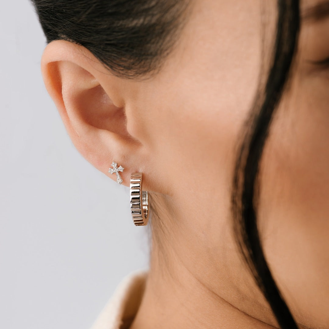 A delicate mix of sweet but edgy, these tiny silver cross studs add a touch of dark romance to any ear adornment.