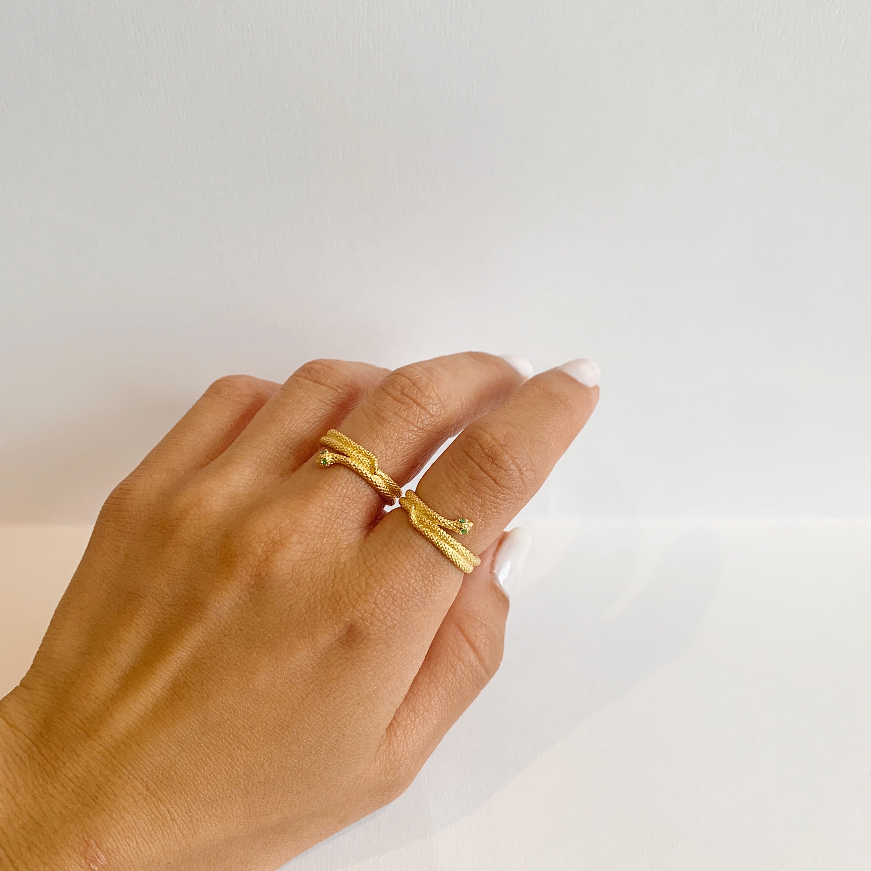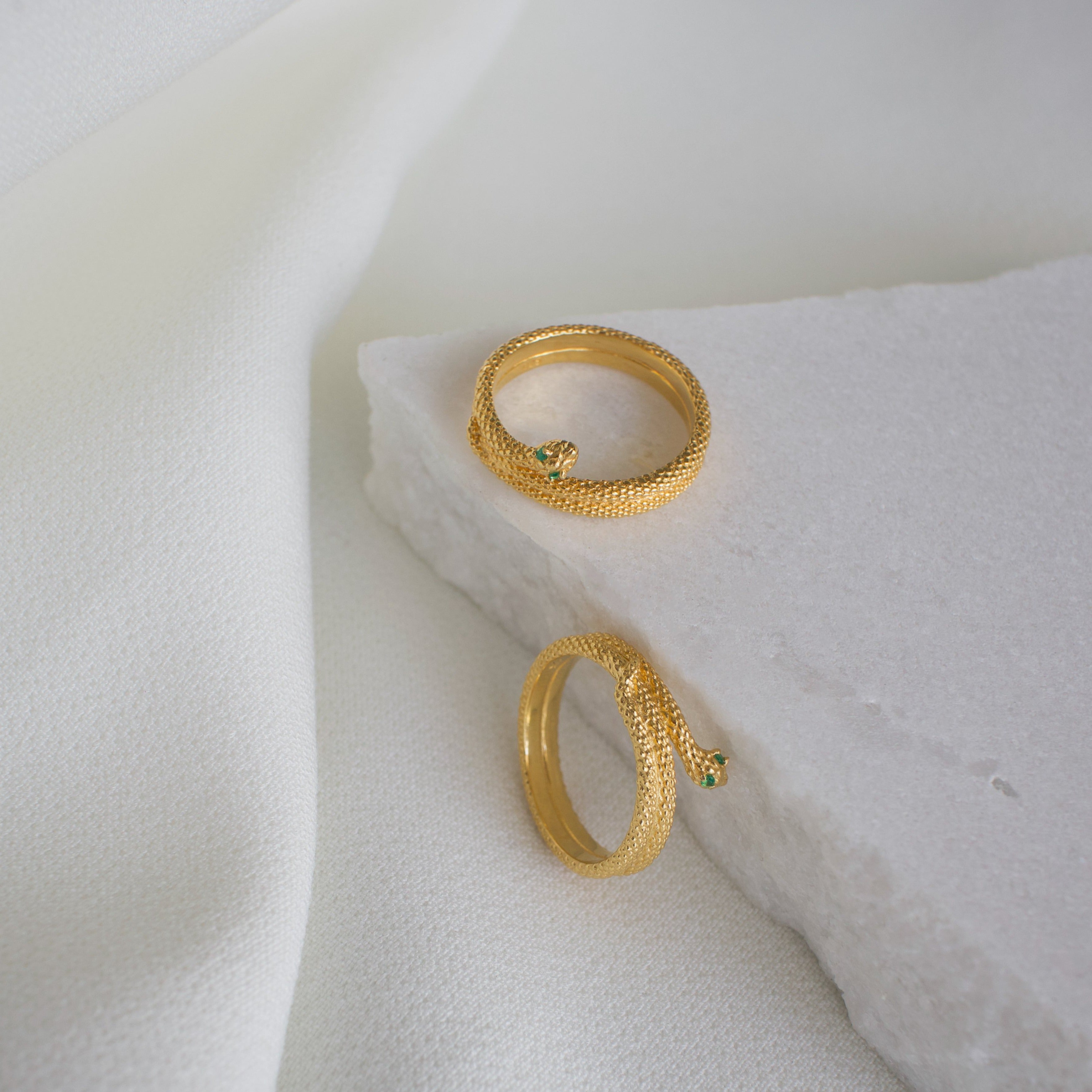 A twist on our old faithful Envy snake ring. A matching set designed to be worn together as a stack, or separately.