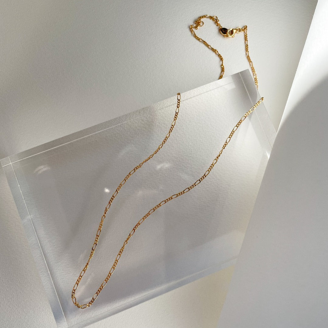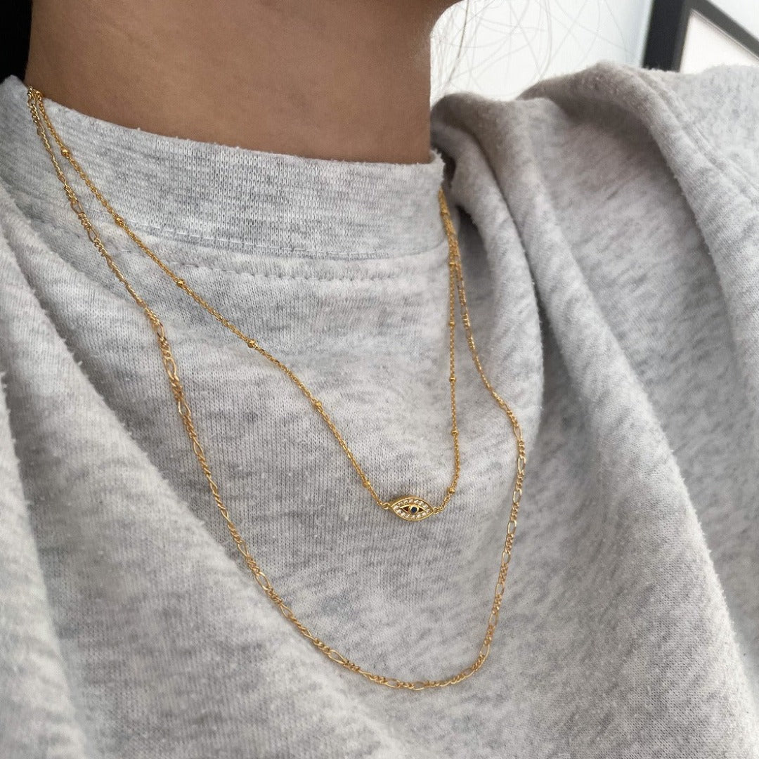 As delicate as thread, the Figaro collection features a combination of divine chains wrapped in gold and made with 925 sterling silver. Layer these detailed staples against each other for an effortless look, or to compliment your bolder pieces.