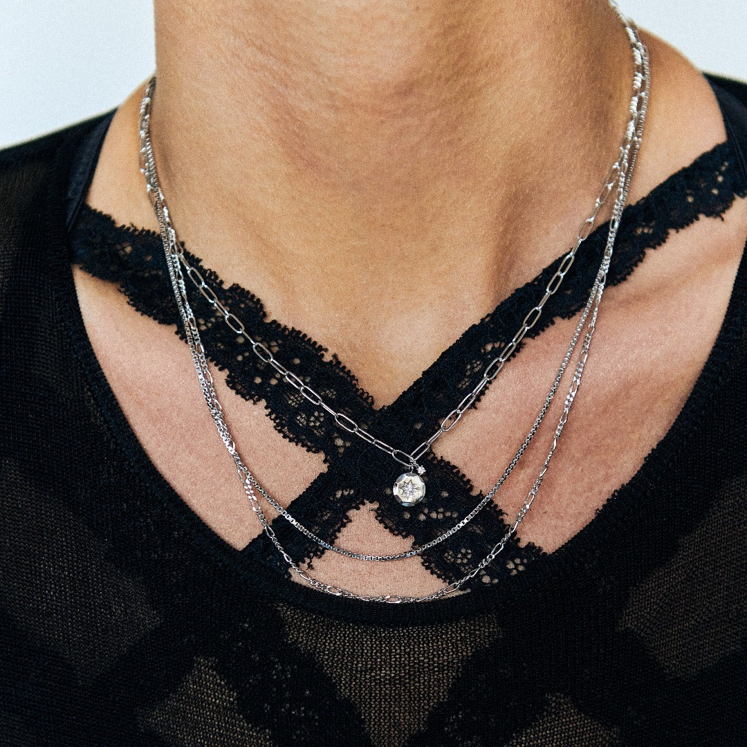 As delicate as thread, the Figaro collection features a combination of divine chains wrapped in gold and made with 925 sterling silver. Layer these detailed staples against each other for an effortless look, or to compliment your bolder pieces.