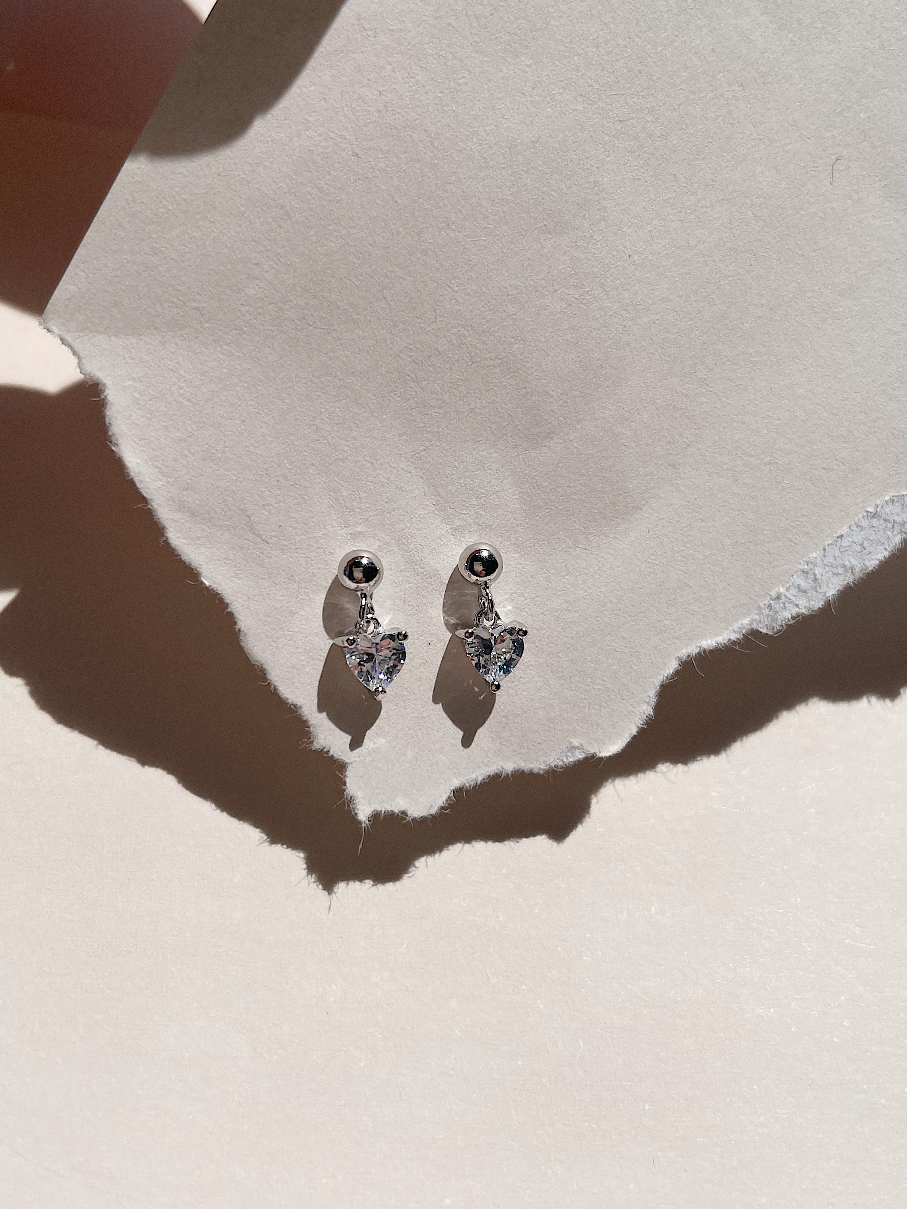 Heart Drop Silver Earrings