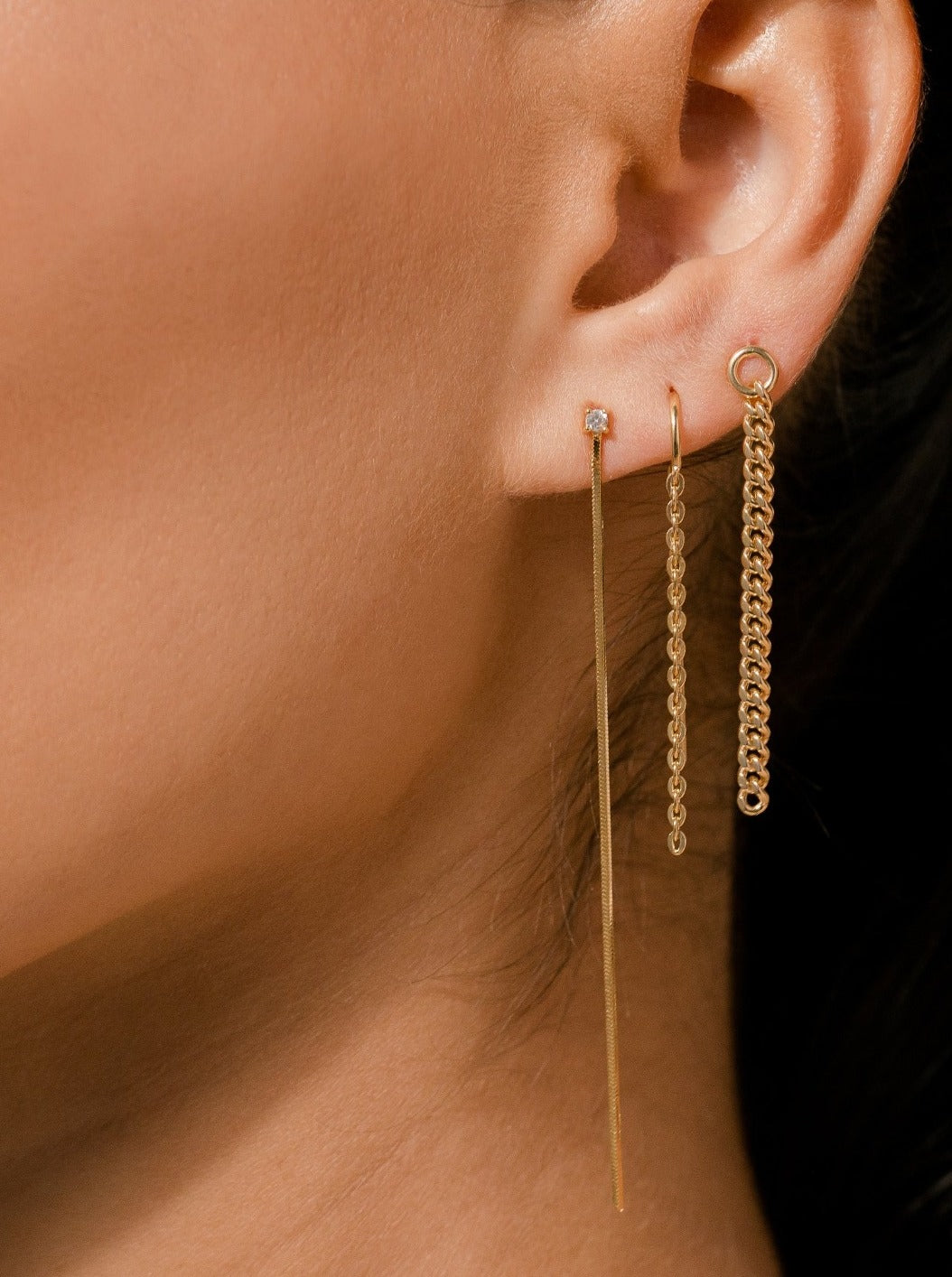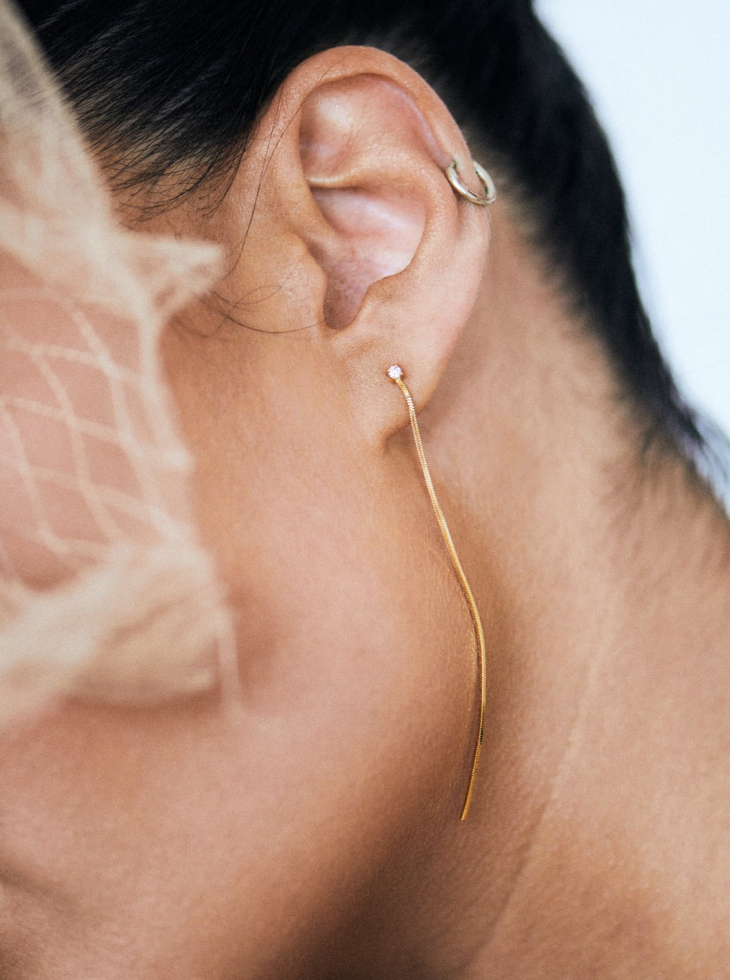 An ultra-fine snake chain that cascades into a single, fluid line. Its extended length offers just the right amount of drama for evening or formal moments, yet remains perfectly understated. Lightweight and endlessly elegant, Lior is the go-to drop earring when you want to elevate your look without ever feeling overdone.