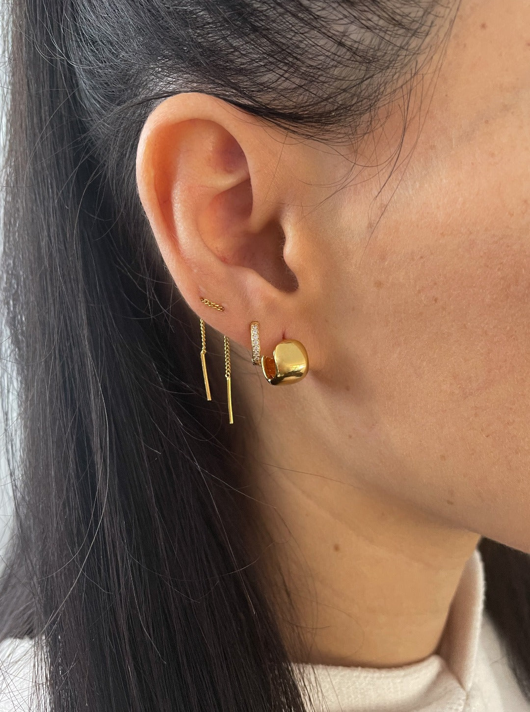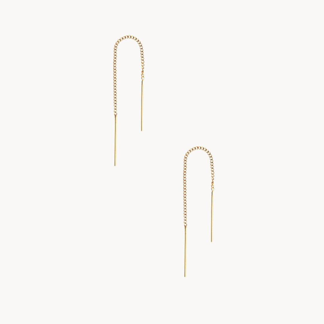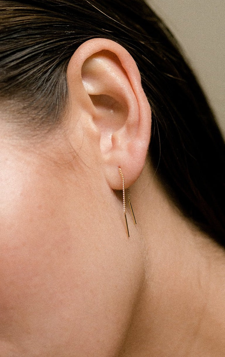 An understated chain threader earring versatile & fine enough for threading through double piercings.