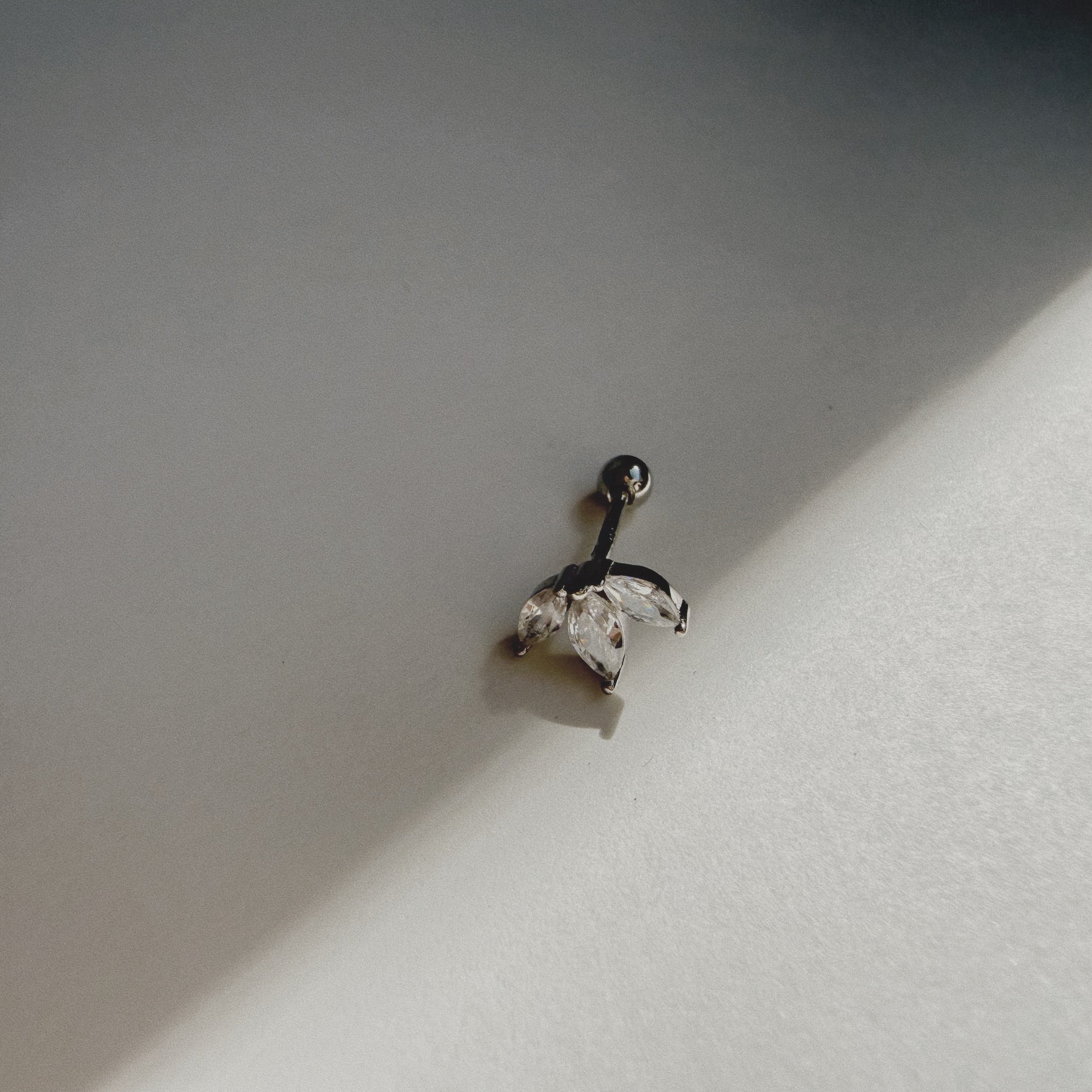 Three softly curved petals form this delicate silver stud. Finished with a screw-back for comfort and security in any piercing.