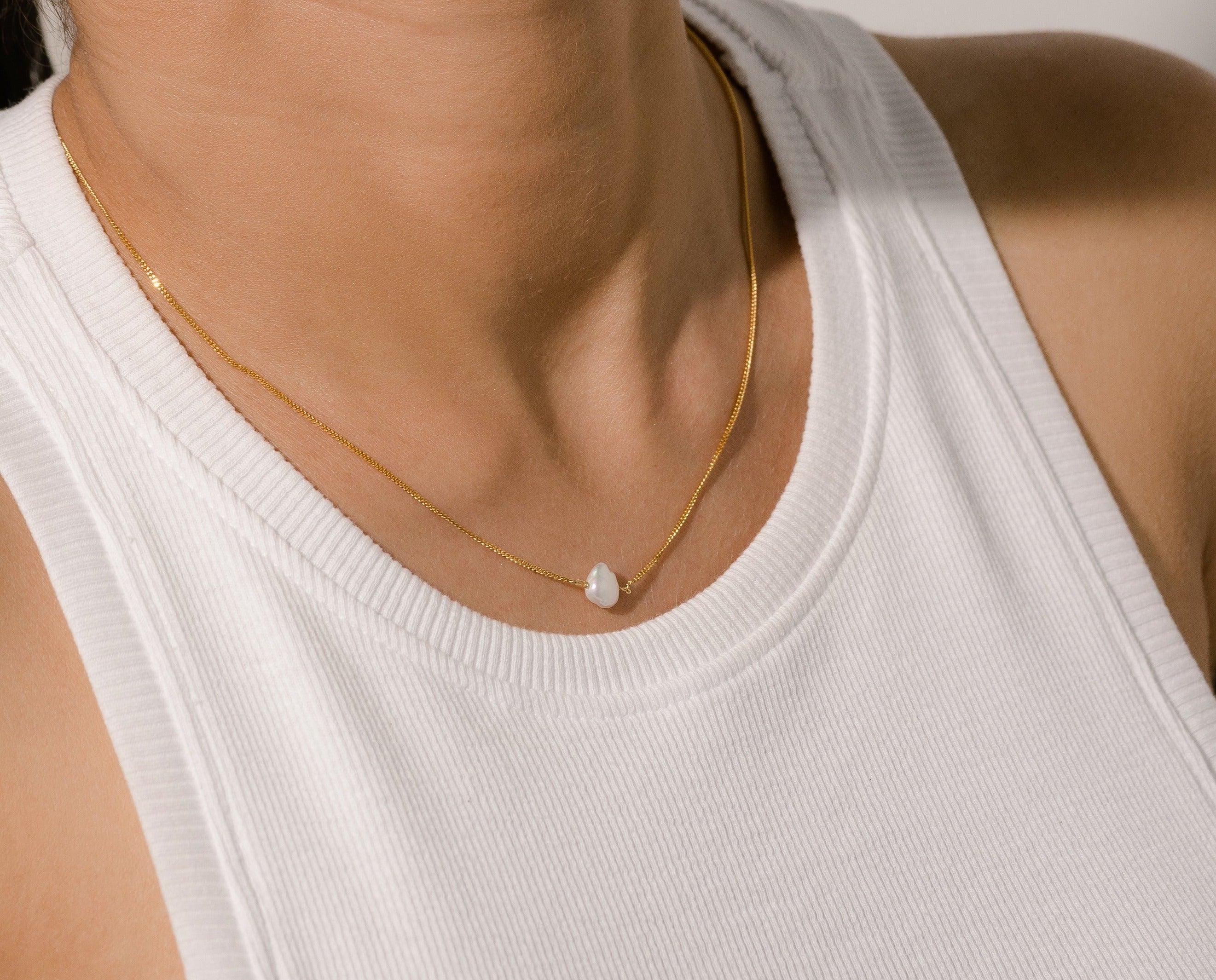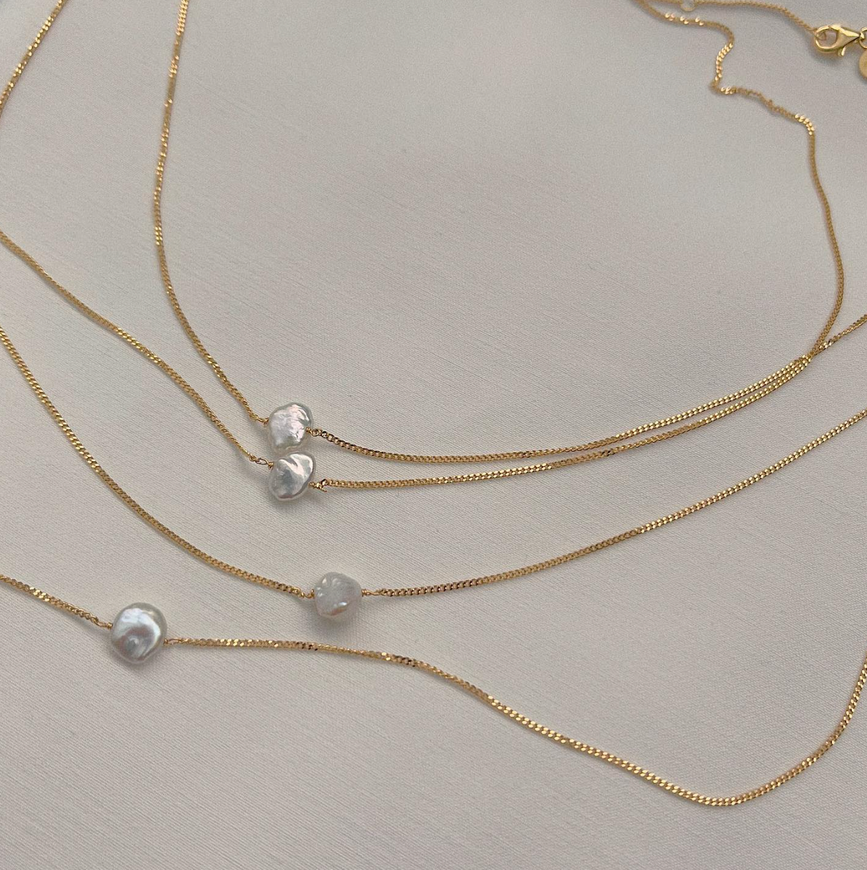 The Keshi pearl is a by-product of pearl cultivation, its name deriving from the Japanese word "poppy" to reflect its size. Every Keshi pearl is unique and each has its own distinct marks and characteristics as a result of the pearl culturing process. Please bear this in mind upon purchasing your one-of-a-kind Esq Keshi pearl piece.